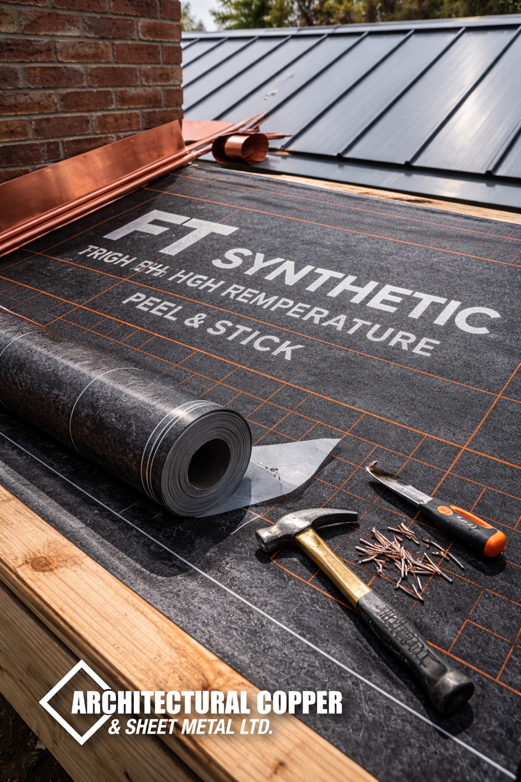 At Architectural Copper & Sheet Metal Ltd., Patrick treats roof underlayment as a first-class system – because most roof problems don’t start on the surface. They start below it.